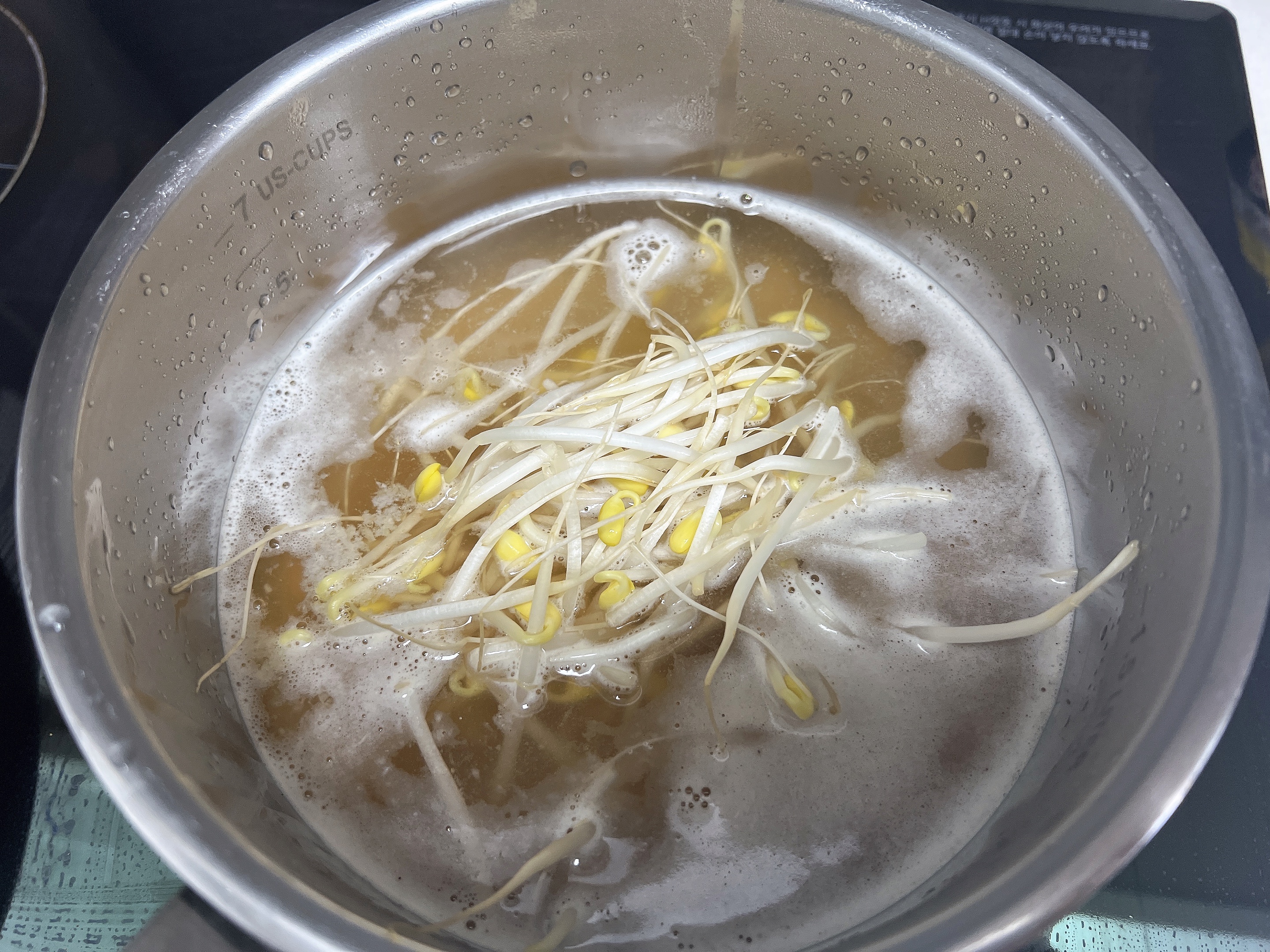 3. 콩나물 넣고 뚜껑 덮고 끓이기 + 후추 톡톡