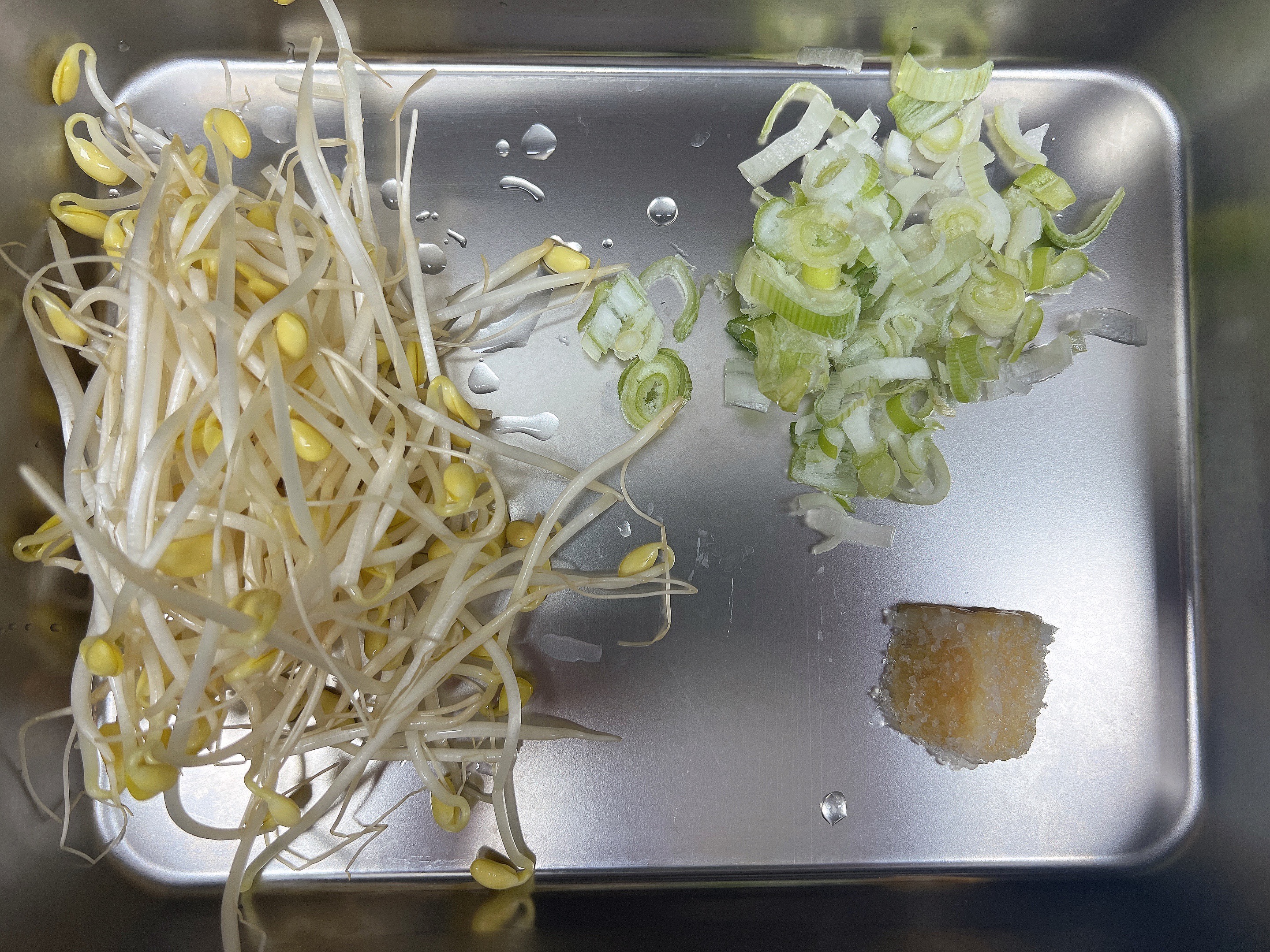 재료 : 콩나물 한줌, 다진마늘 1t, 파, 소고기 다시다 1스틱, 참치액, 후추