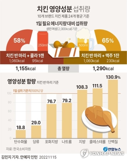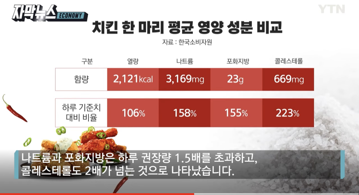 치킨의 배신 2. 치킨 한마리 열량이 하루 권장량을 초과한다.