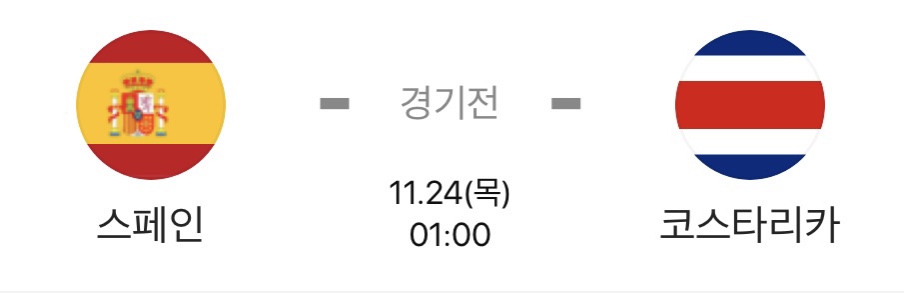 카타르 월드컵 본선 1차전 스페인 대 코스타리카 경기는 24(목) 22:00 예정되어 있습니다.
