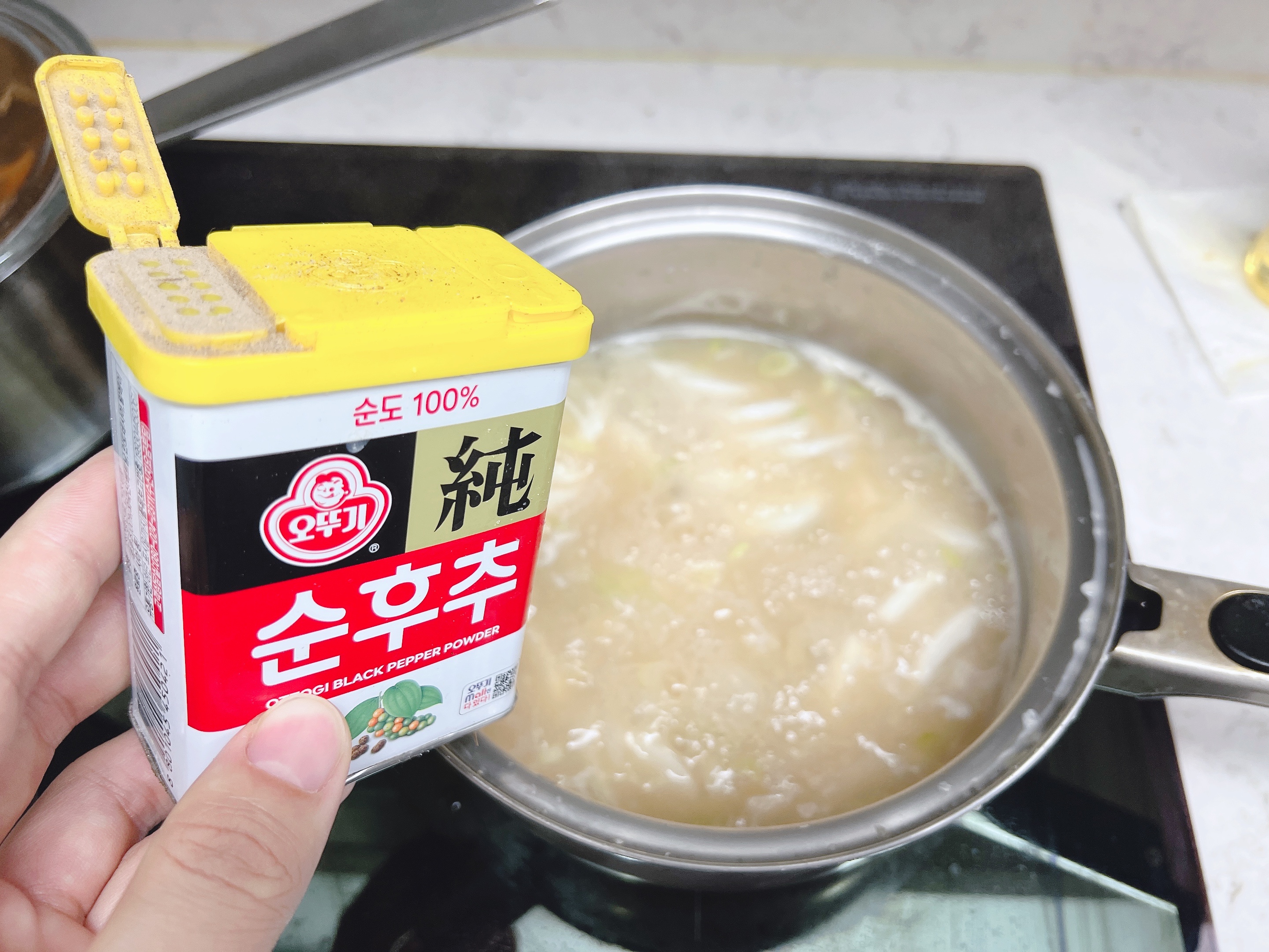 마지막으로 개인 소금간을 조금 합니다. 후추 톡톡은 기본 옵션입니다.