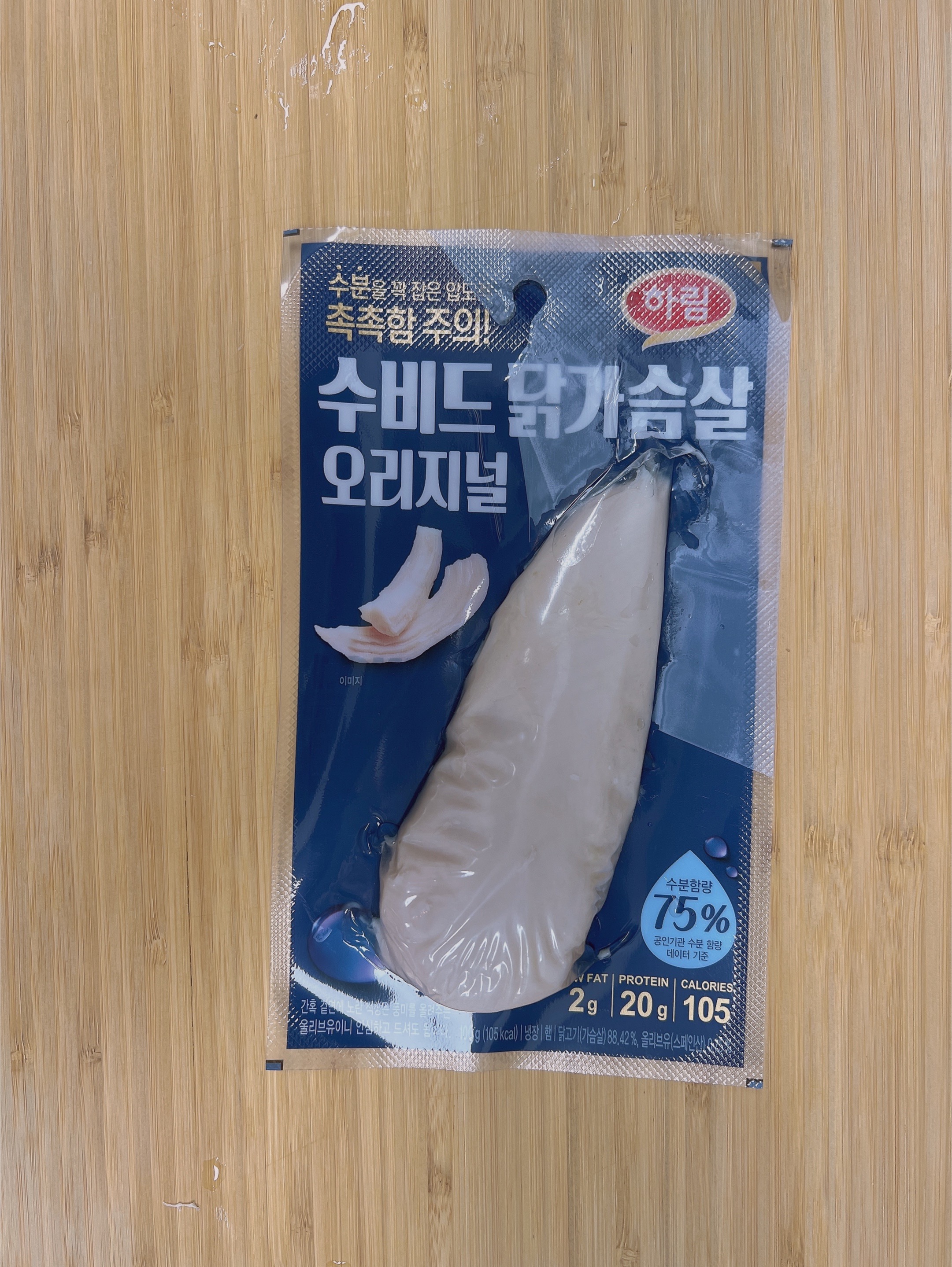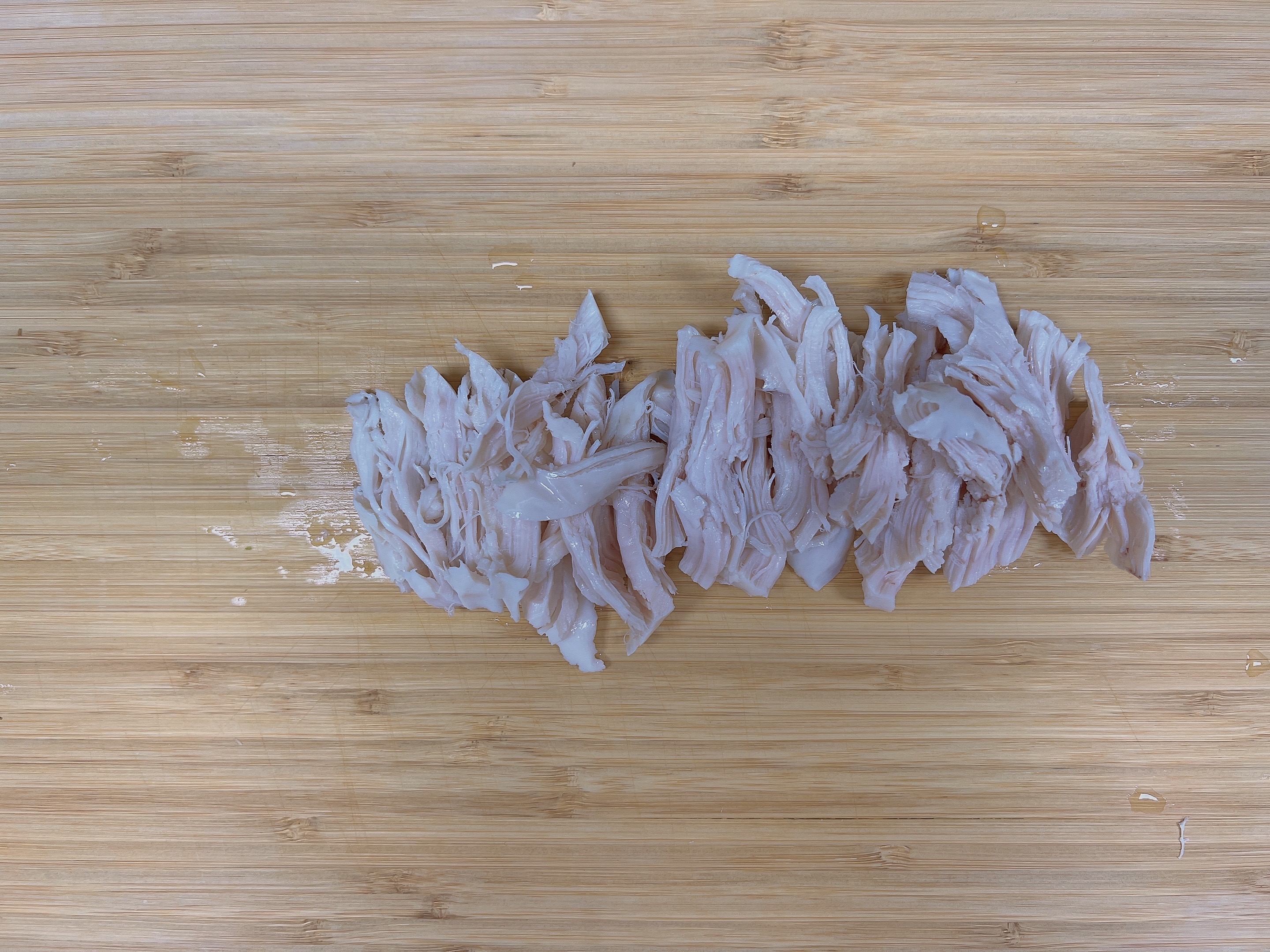 3. 닭가슴살은 먹기 좋은 크기로 찢어 줍니다.