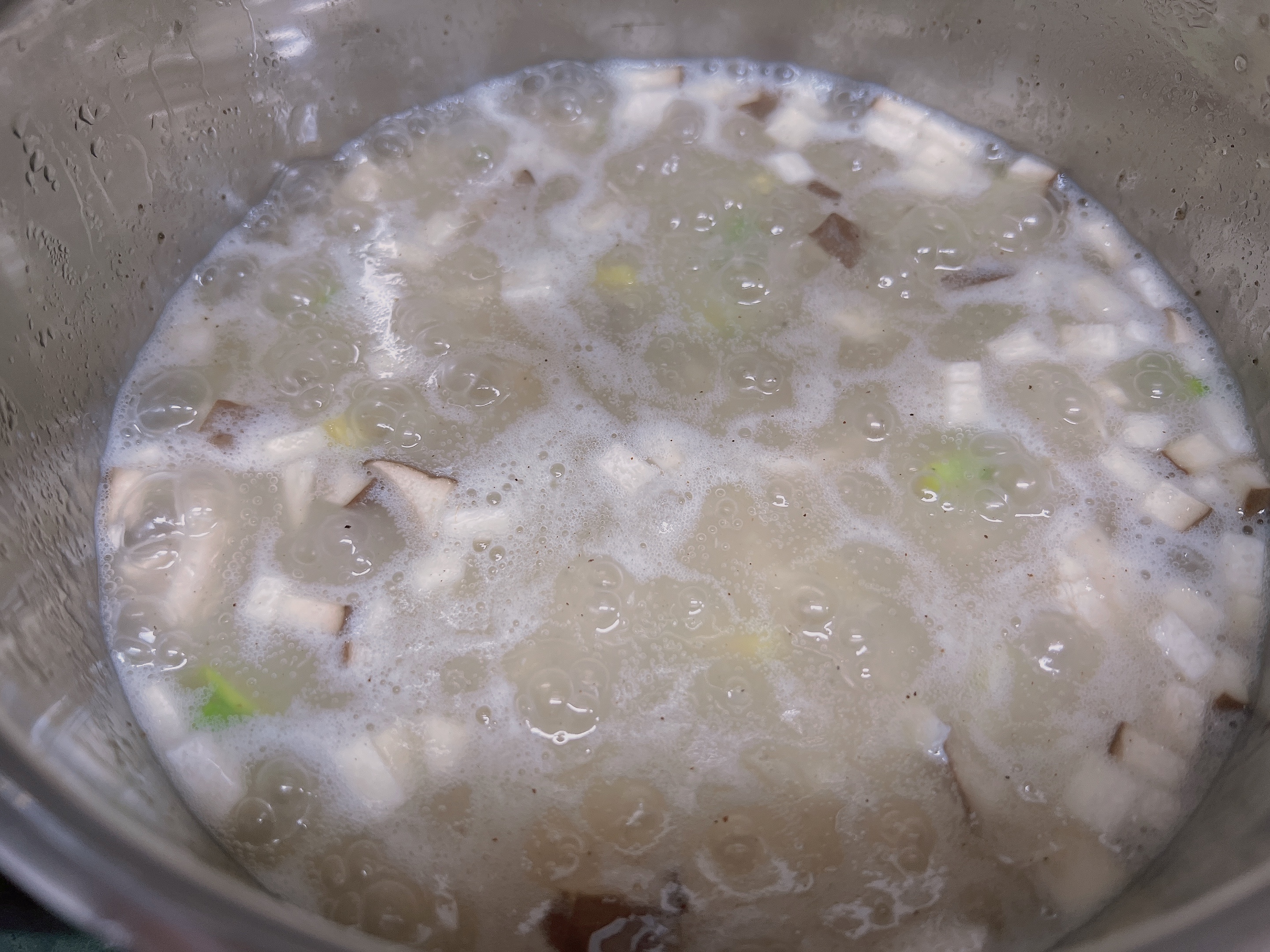레토르트 죽은 밥알이 거의 느껴지지 않더라구요. 저는 집에 남은 밥을 한 주걱정도 함께 넣어 주었습니다.