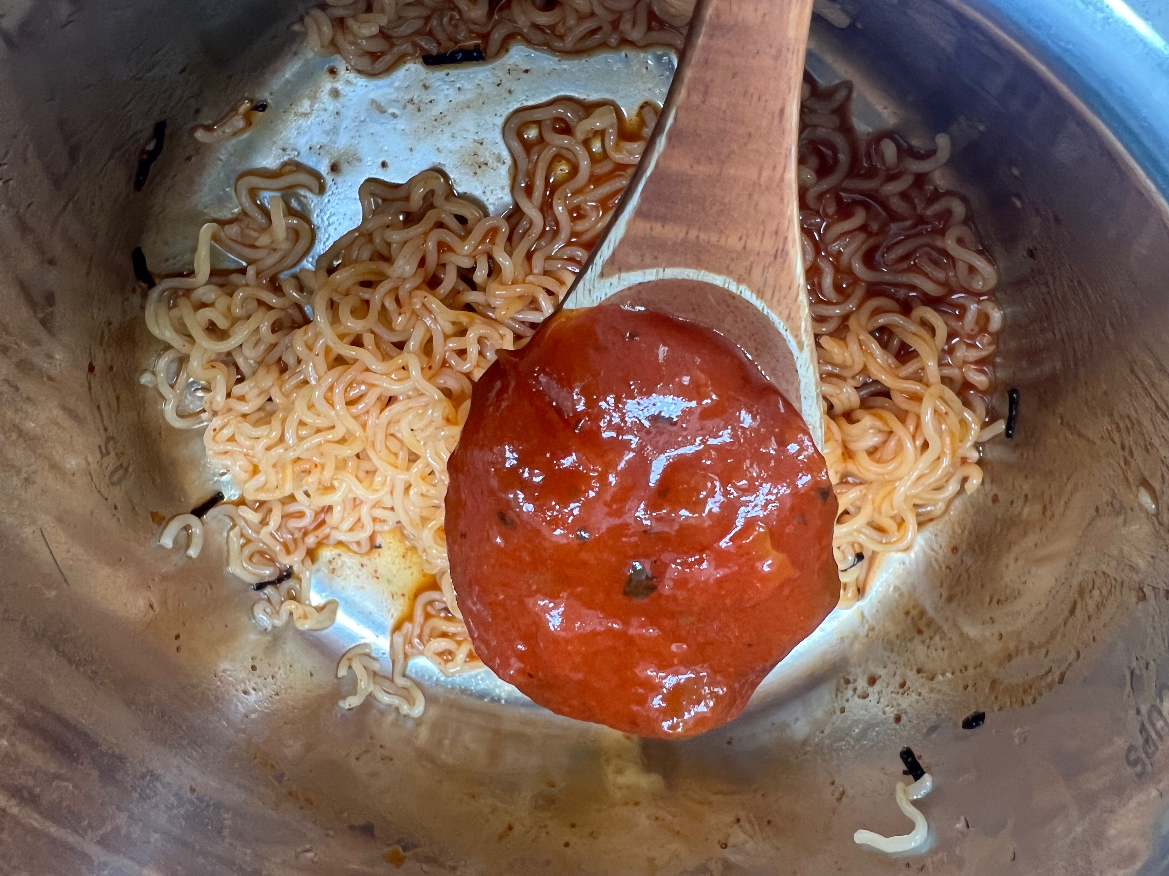 다 익은 비빔면은 차가운 물에 행궈줍니다