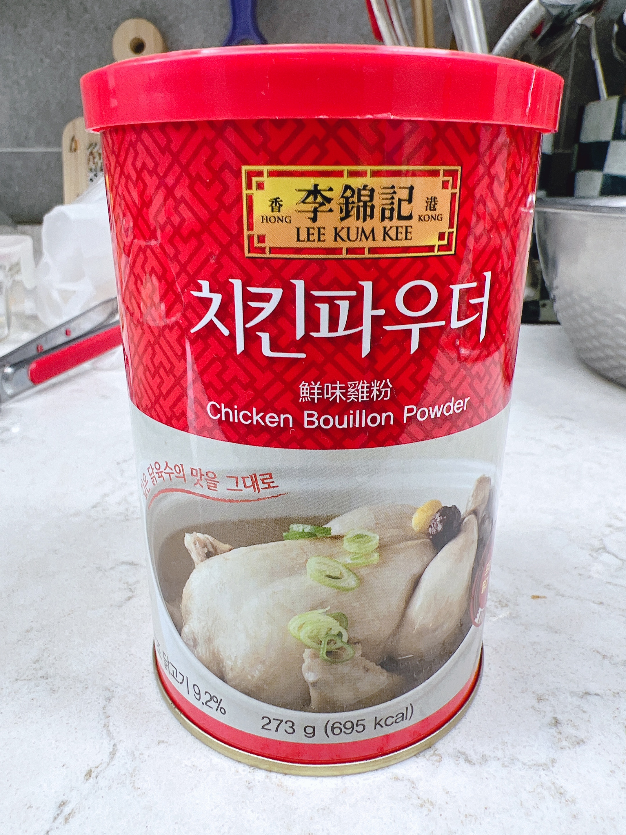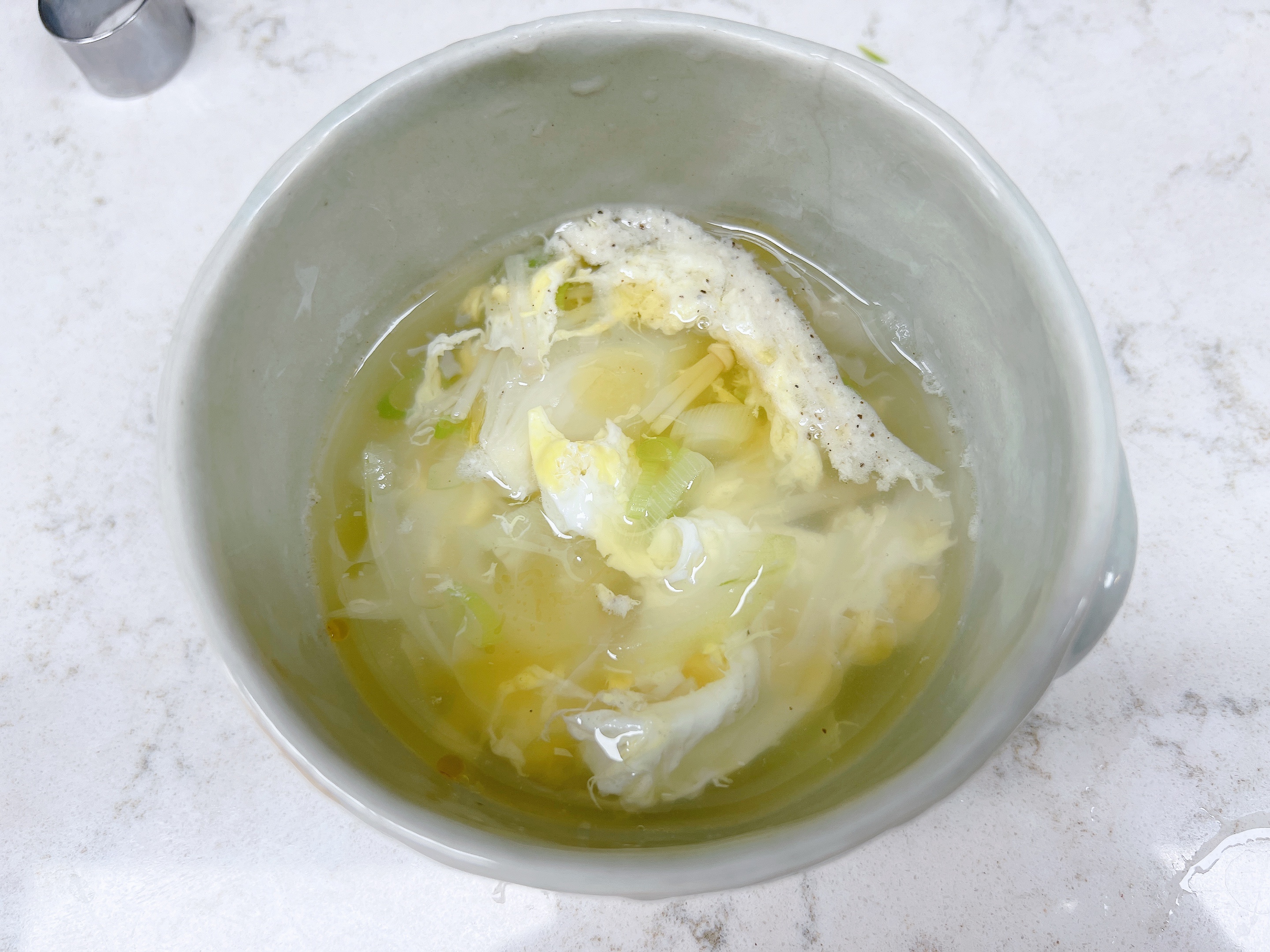 재료 : 물(500ml), 야채(파, 양파, 팽이버섯), 치킨파우더, 계란