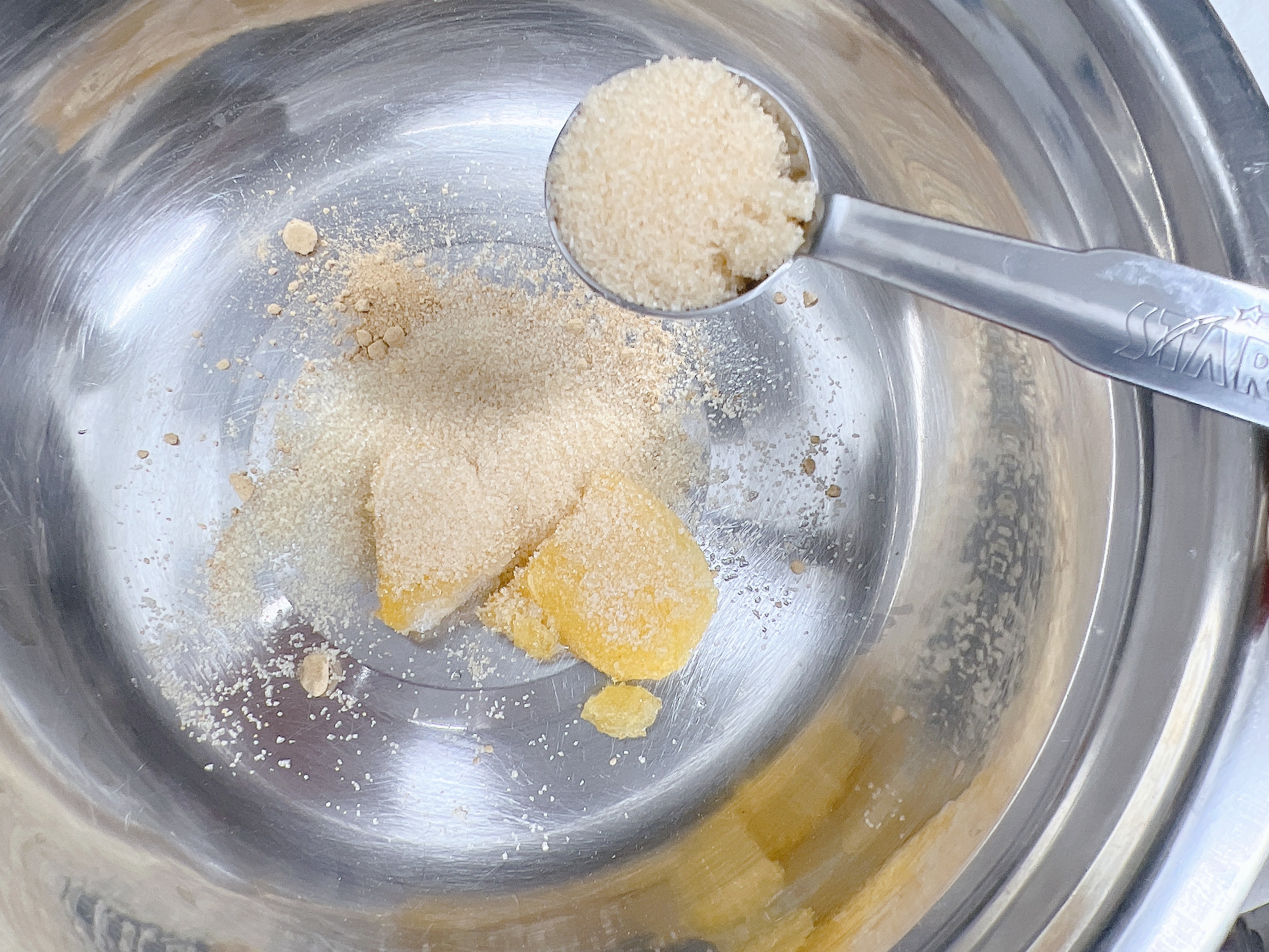 1. 다진마늘 2t에 가루양념(생강가루 1/2 t, 설탕 3t, 후추가루 듬뿍, 미운 1/2t)