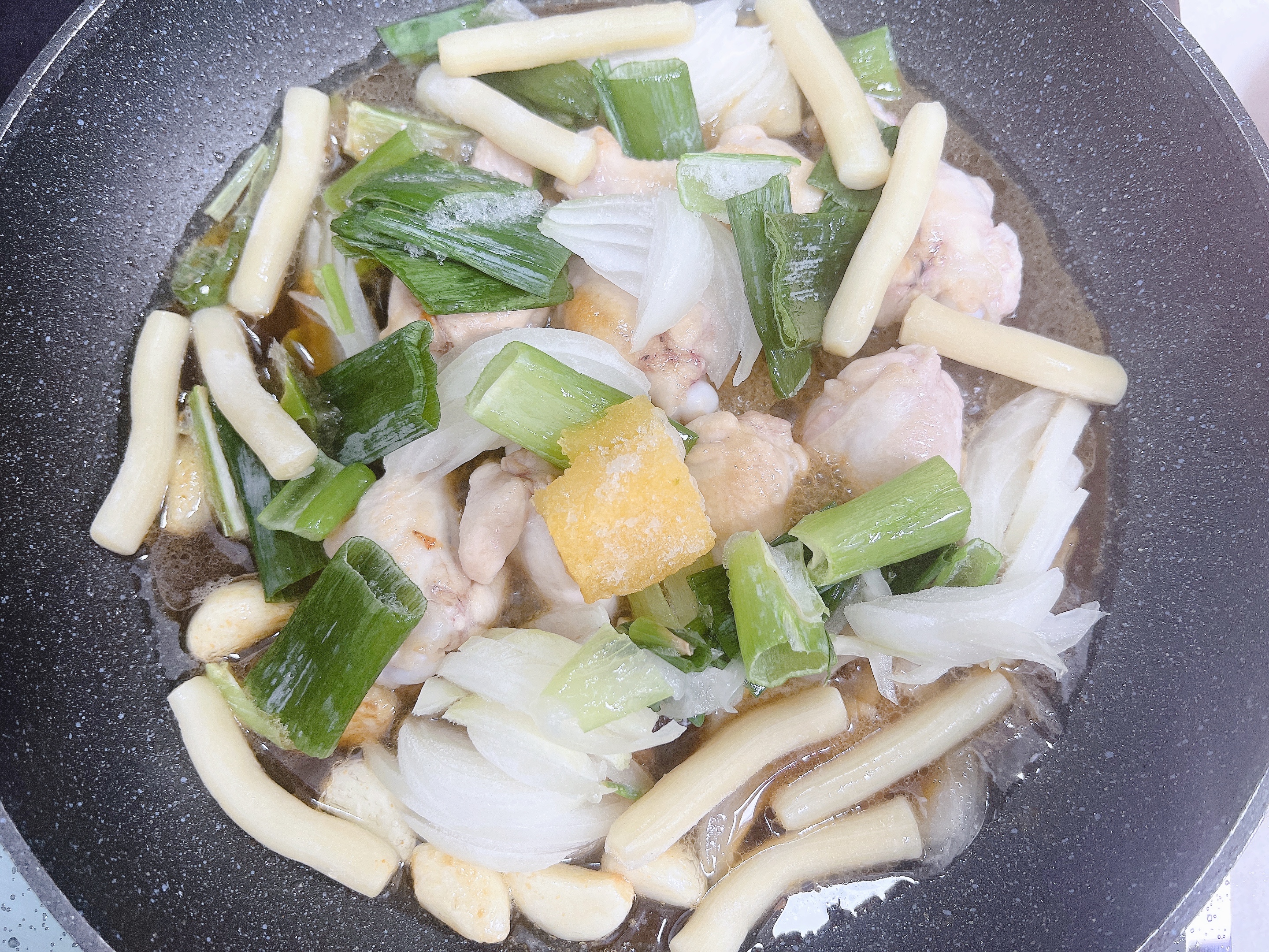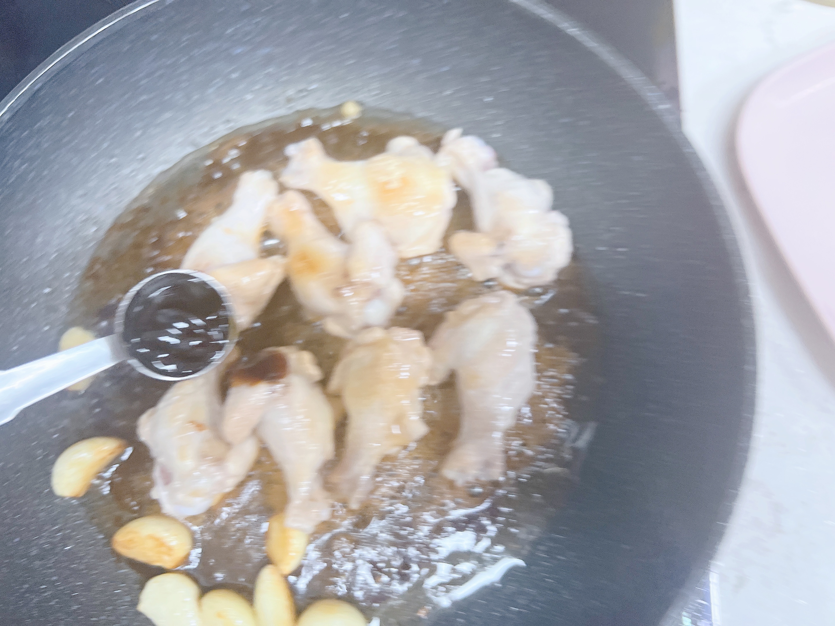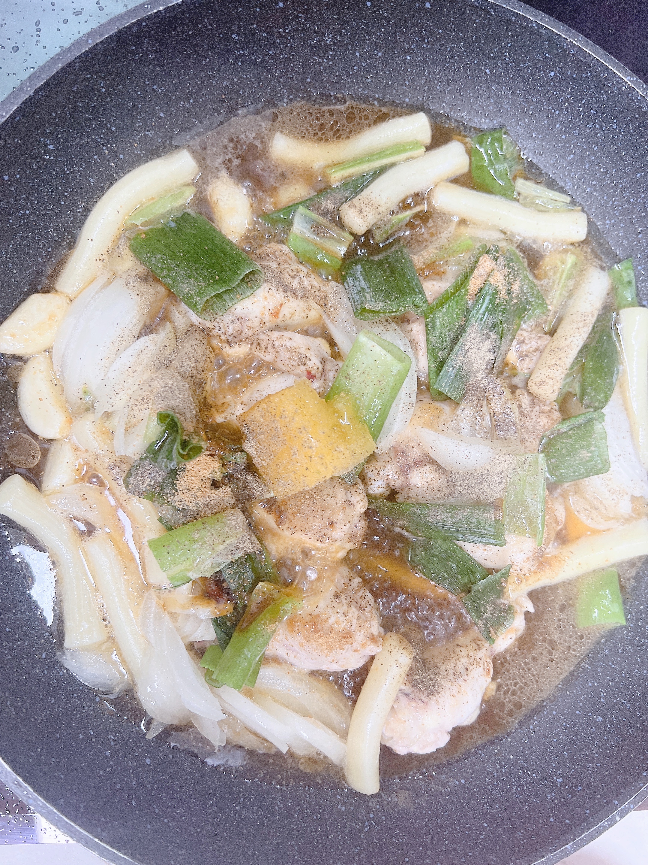재료 : 마늘 7톨, 닭봉, 설탕 3t, 간장 7t, 굴소스 2t, 채소(양파, 파), 다진마늘 1t, 올리고당 1t, 소고기 다시다 1t, 떡볶이떡