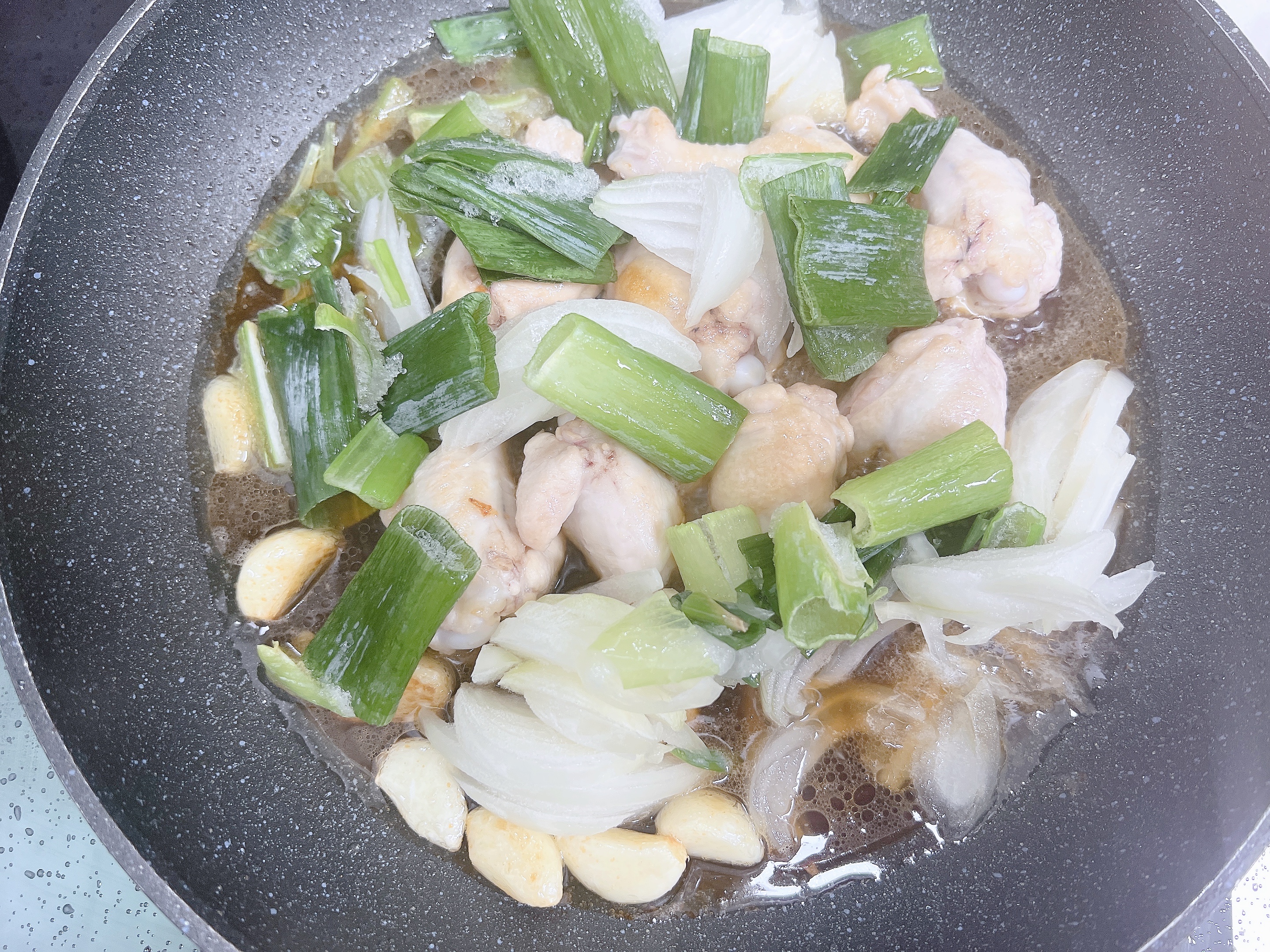 양파, 파를 모두 한번에 넣어줍니다. 이때부터 불은 강불로 바꾸웠습니다.