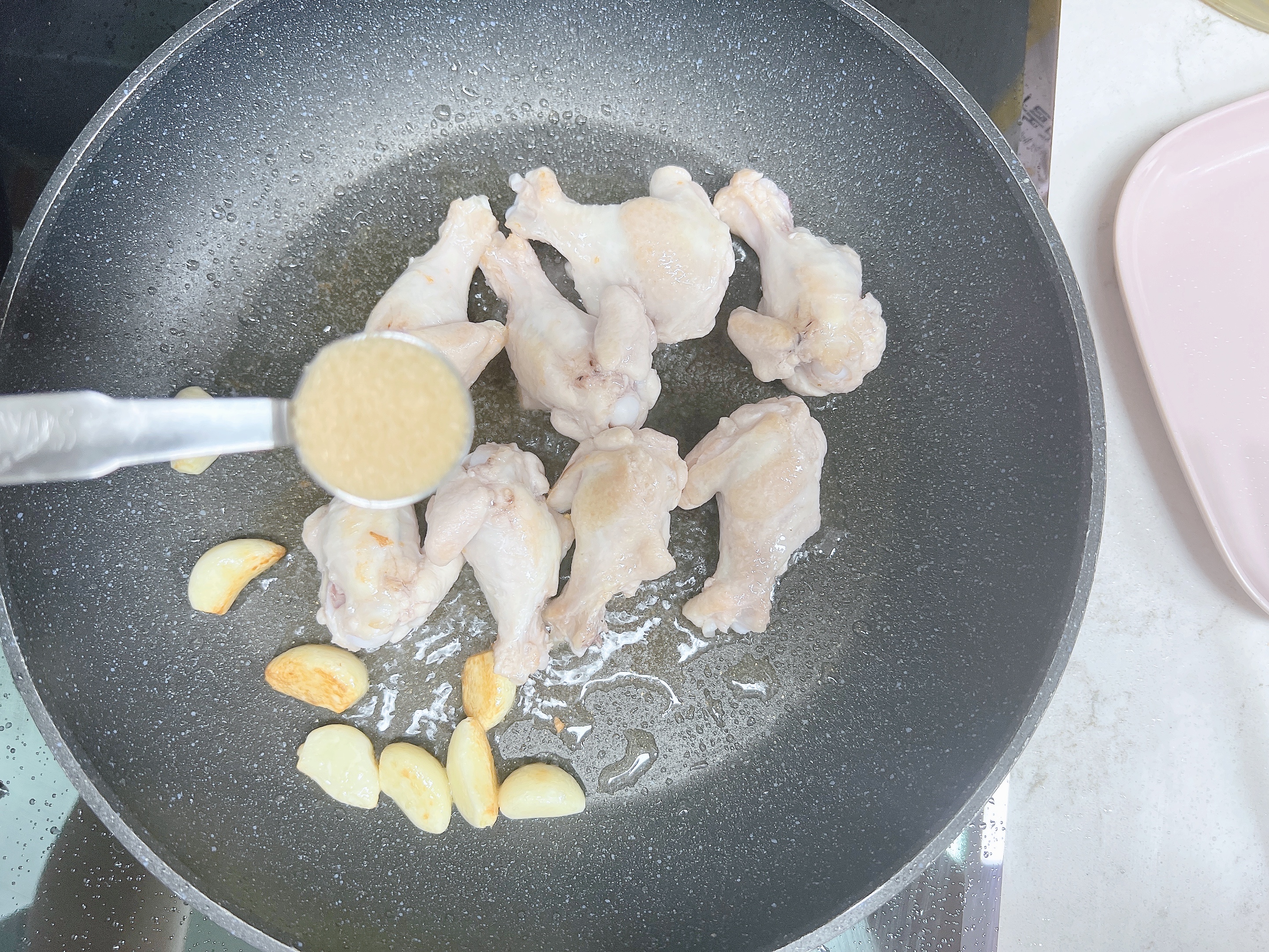 재료 : 마늘 7톨, 닭봉, 설탕 3t, 간장 7t, 굴소스 2t, 채소(양파, 파), 다진마늘 1t, 올리고당 1t, 소고기 다시다 1t, 떡볶이떡